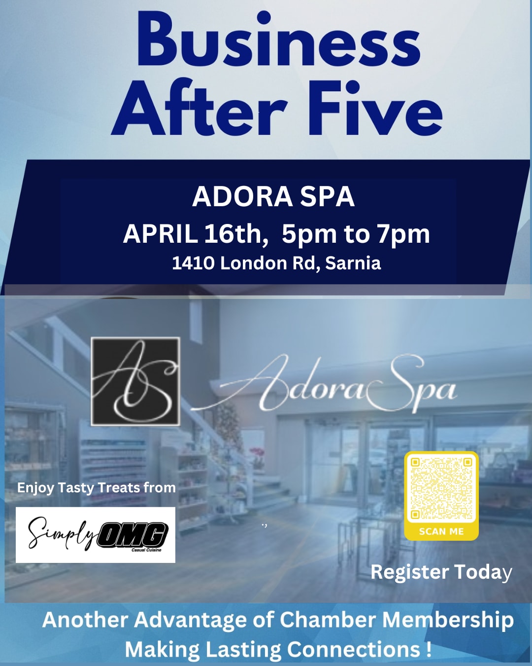 Join us at Adora Spa for April's Business After Five Networking Event! Explore their luxurious spa while connecting with fellow professionals in a relaxed, engaging atmosphere.