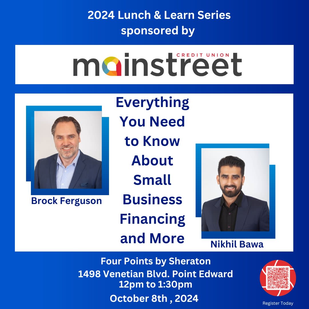 Join us for the October 8th Lunch & Learn! Sponsored by Mainstreet Credit Union, this informative session will feature Brock Ferguson and Nikhil Bawa, who will guide you through everything you need to know about small business financing and more.