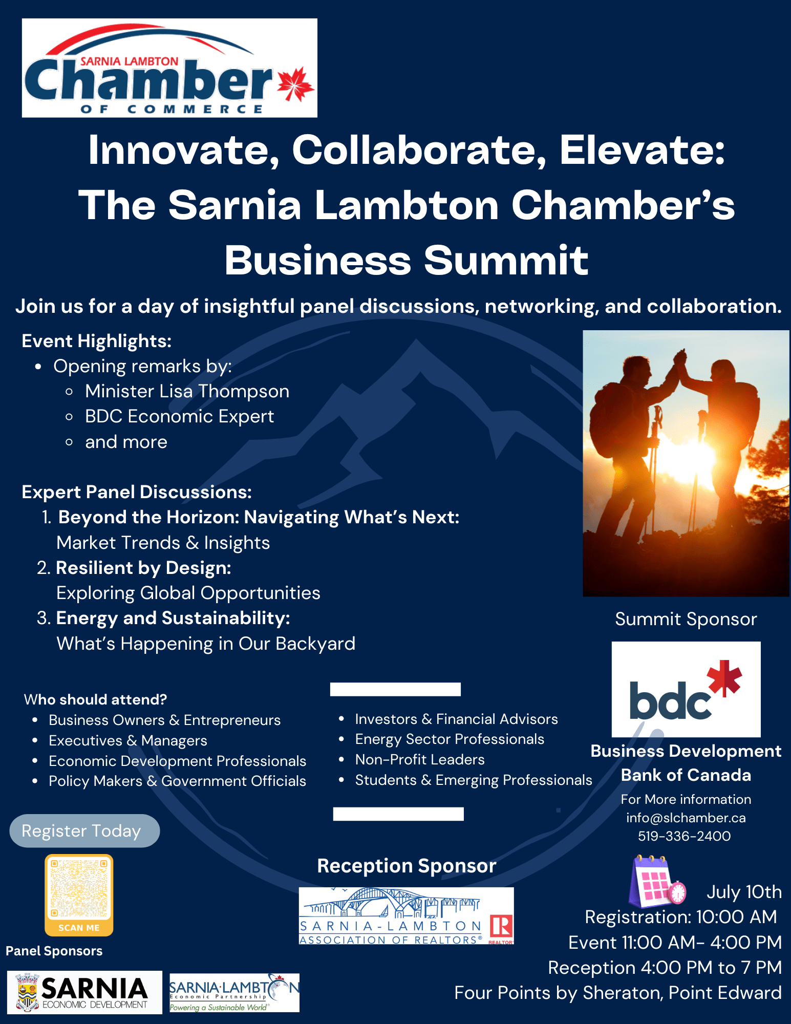 Join us for a day of insight, connection, and inspiration at the Sarnia Lambton Chamber’s Business Summit, presented in partnership with BDC.