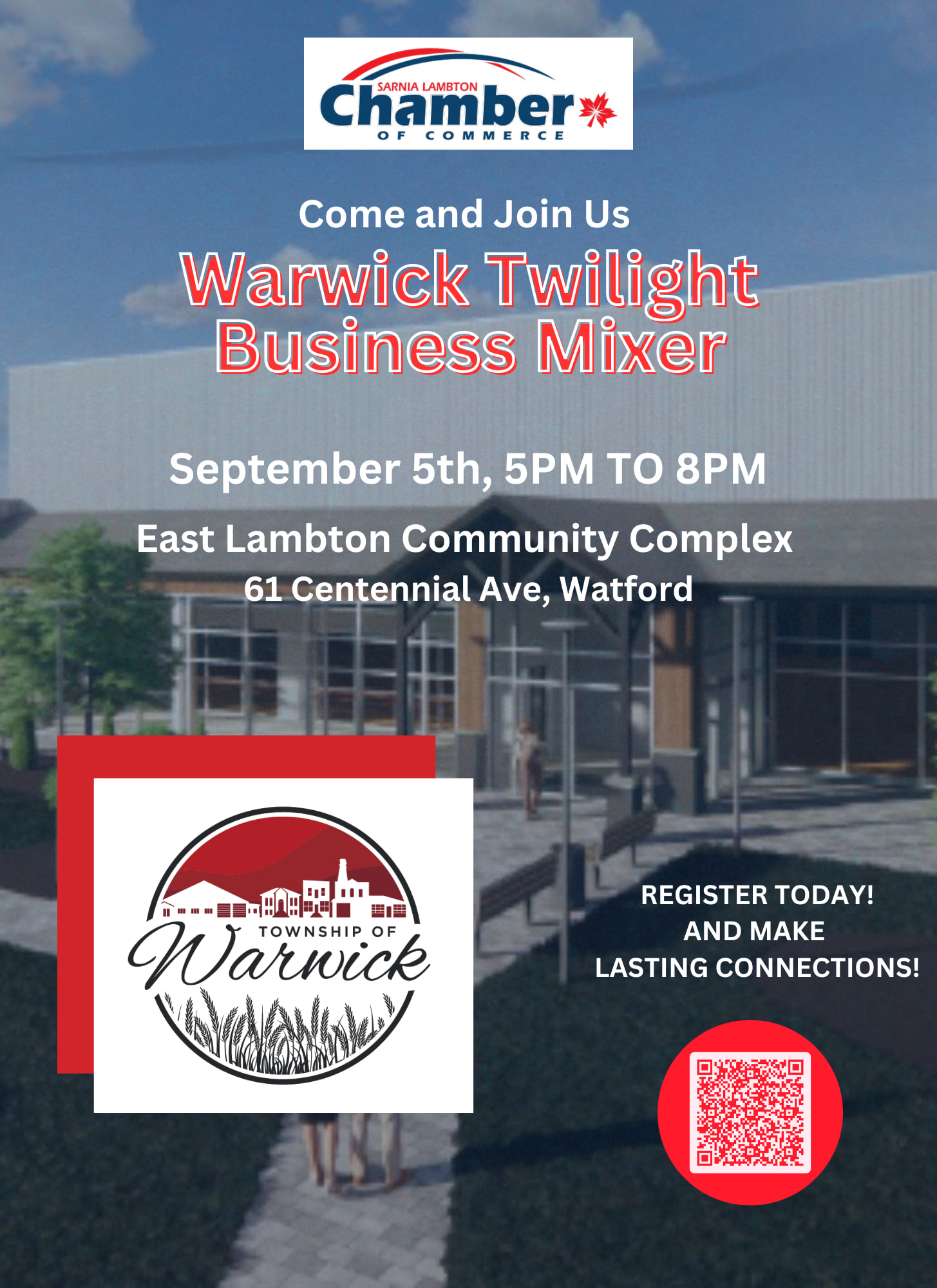 Join us for the Warwick Twilight Business Mixer on September 5th at the East Lambton Community Complex! This event is a fantastic opportunity to network, make connections, and grow your business within the community.