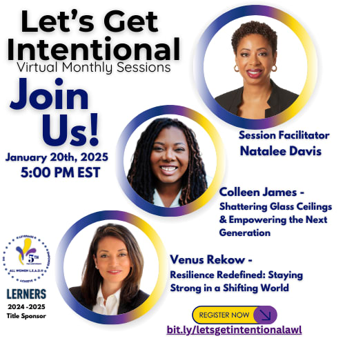 Join us January 20th, 2025, at 5 PM EST for a powerful Let's Get Intentional session where we tackle what it really means to stay strong and break barriers in today's shifting workspaces.