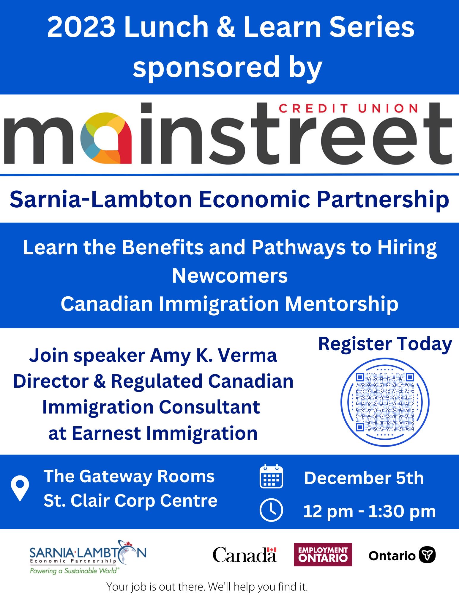 Earnest Immigration and Citizenship Services Inc., a licensed immigration consultancy in Windsor, is thrilled to announce its strategic partnership with the Sarnia-Lambton Economic Partnership (SLEP) to support employers in the Sarnia-Lambton region with accessing global talent. Join us for this very informative Lunch & Learn for employers, where we will help answer your questions regarding accessing global talent.